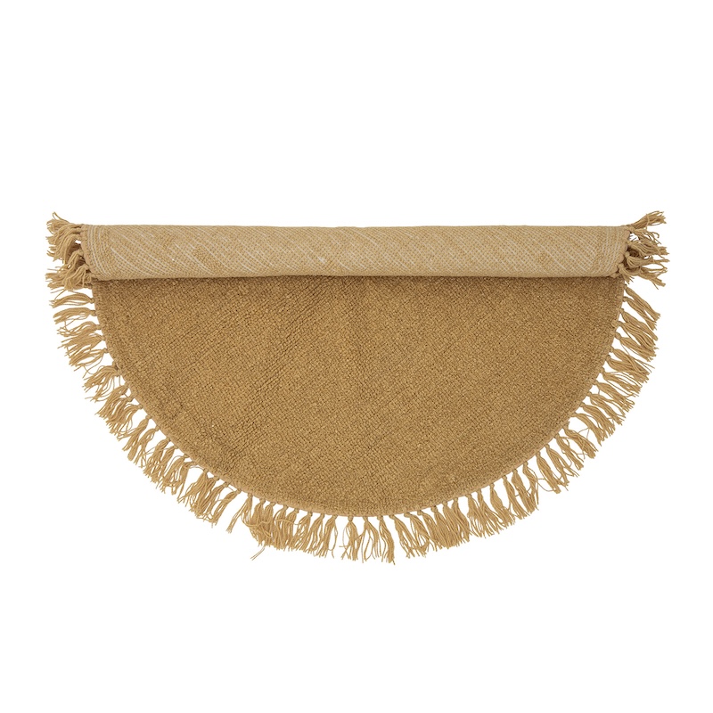 Lenea marki Bloomingville to miękki, okrągły dywan, wykonany w 100% z wełny, z małymi frędzlami na brzegach. Piękny, spokojny kolor w odcieniu rdzawego curry sprawia, że dywan jest idealny w każdym pomieszczeniu jako przytulny i ponadczasowy dodatek.