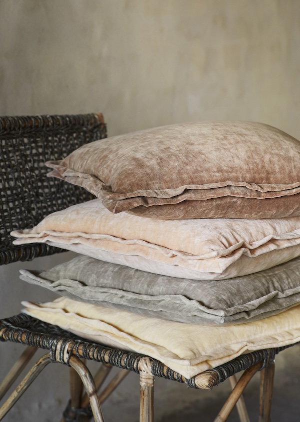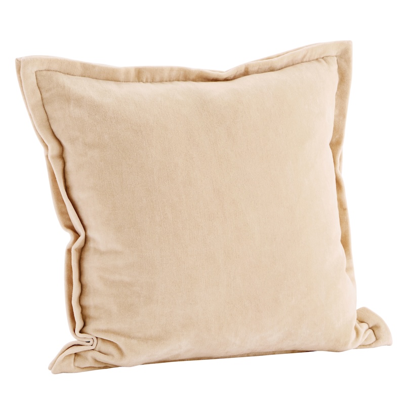 Poszewka na poduszkę marki Madam Stoltz, wykonana ręcznie z aksamitu w delikatnym kolorze baby rosę. Poszewkę możesz wyeksponować pojedynczo lub w towarzystwie innych aksamitnych poszewek, co pozwala na zabawę kolorami i łączenie ich w różnych kombinacjach. Stonowany, jasny kolor i miękki materiał dodadzą wnętrzu ciepła i przytulności. Poszewkę można prać w temperaturze 30° C. Unikaj wystawiania produktu na bezpośrednie działanie promieni słonecznych, ponieważ kolory mogą blaknąć. Aksamit to ponadczasowy materiał o długiej tradycji, utożsamiany z luksusem i elegancją. Szlachetna, mięsista tkanina bawełniana charakteryzuje się miękkością i subtelnym połyskiem. Pasuje na poduszkę 50x50 cm.