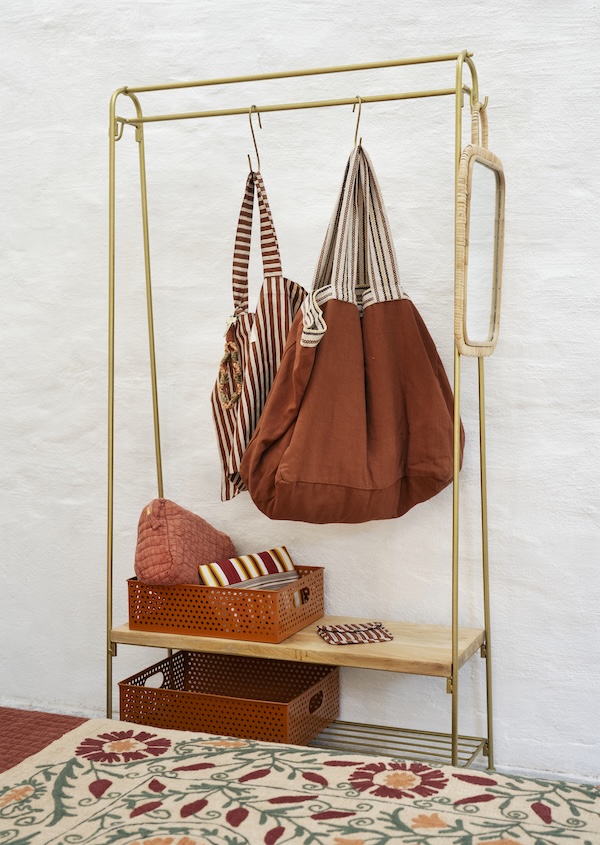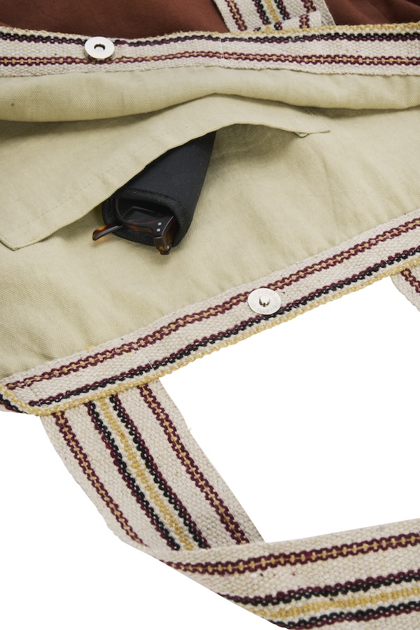 Od zakupów po nadmorskie wycieczki, ta bawełniana torba jest stworzona, aby towarzyszyć Ci wszędzie. Wykonana w Indiach, posiada wewnętrzną kieszeń i zamknięcie na magnes, aby bezpiecznie trzymać klucze, telefon i portfel na miejscu. Oto pojemna torba, która pomieści wszystko, czego potrzebujesz na krótki weekend, zakupy, plażę lub po prostu na wiele codziennych zadań. Szerokie, mocne pasy w kontrastowym kolorze wygodnie spoczywają na ramieniu i sprawiają, że noszenie ciężkich rzeczy staje się proste i stabilne. Torba jest zaprojektowana do długiego użytkowania zarówno wewnątrz, jak i na zewnątrz. Wykonana z przędzy barwionej roztworem, która jest odporna na blaknięcie i utratę koloru podczas prania, dzięki czemu tkanina zachowuje swój spokojny, rdzawy, piaskowy i biały odcień sezon po sezonie. Miękka, ale wytrzymała bawełna zapewnia naturalne uczucie, zachowując przy tym wystarczającą wytrzymałość, aby utrzymać książki, ręczniki lub artykuły spożywcze. Starannie wykończone szwy dodają cichego kunsztu, który pasuje zarówno do relaksujących weekendów, jak i codziennych dojazdów do pracy.